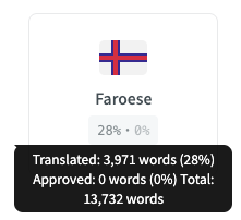 28% av Mastodon-orðunum umsett til føroyskt. #umseting https://crowdin.com/project/mastodon