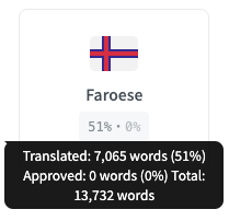 13 fólk hava nú umsett 44% av Mastodon til føroyskt.