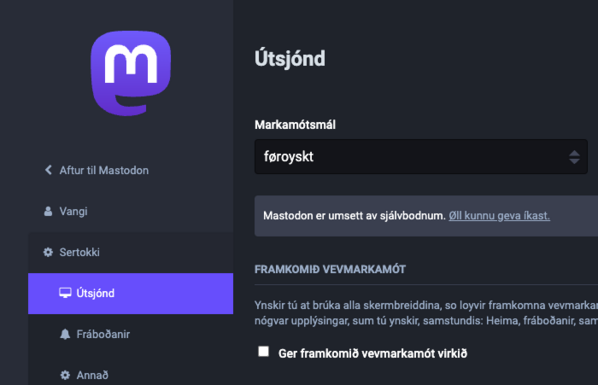 Nú ber til at velja føroyskt markamót her á e.fo 🇫🇴 eins og á øllum øðrum Mastodon ambætarum, sum eru komin á útgávu 4.1.0