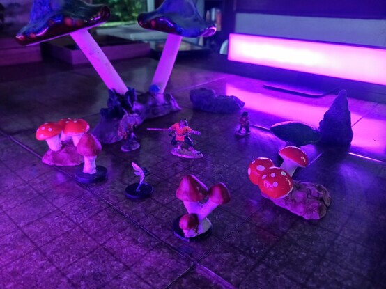 I bought some colour change lights for my #underdark #DnD #5e game. The amount of atmosphere it adds! I've been wanting to try this for years.