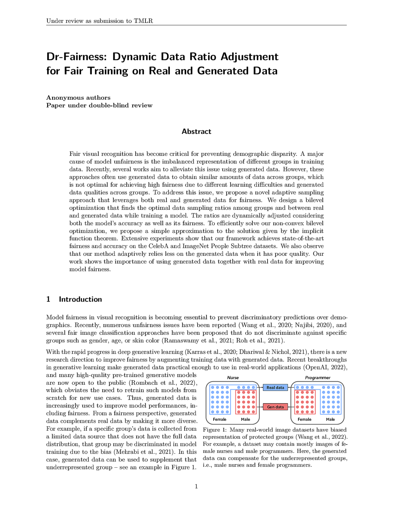 Dr-Fairness: Dynamic Data Ratio Adjustment for Fair Training on Real and Generated Data