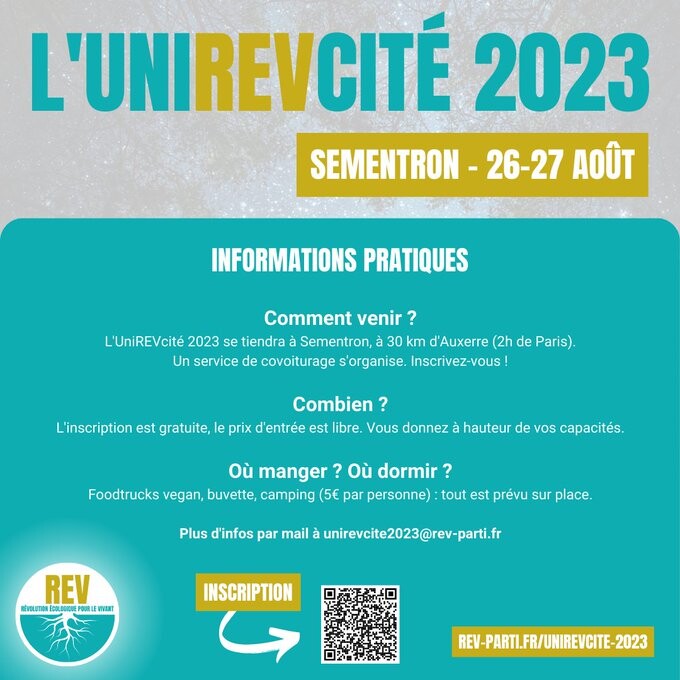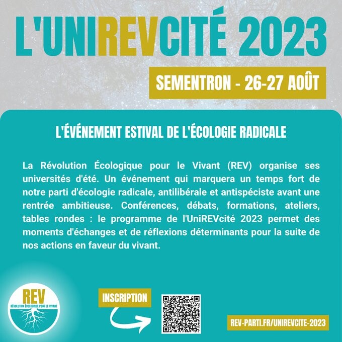🔴Conférences, débats, ateliers, formations, tables rondes, village associatif, camping, soirée festive : l'#UniREVcite2023 s'annonce comme l'événement estival de l'écologie radicale et antilibérale.