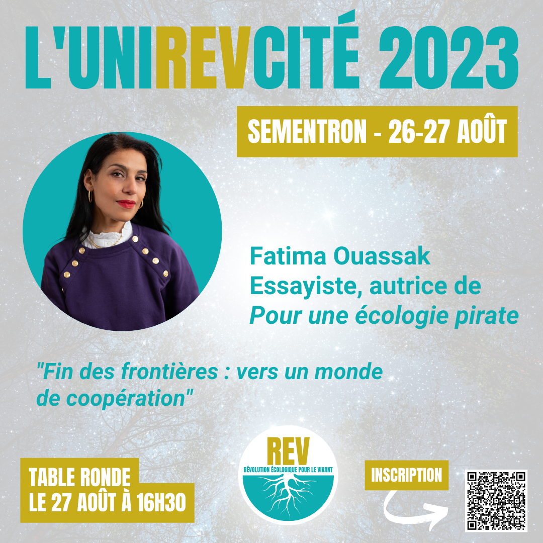 L'autrice et essayiste Fatima Ouassak, bien connue pour ses engagements dans les luttes écologique, antiraciste et féministe, interviendra à l'#UniREVcité2023, le 27 août à Sementron, en Bourgogne.