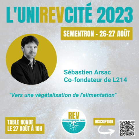 Nous aurons l'honneur de recevoir Sébastien Arsac, co-fondateur de l'association L214 à l'UniREVcité, le 27/08 à Sementron.
