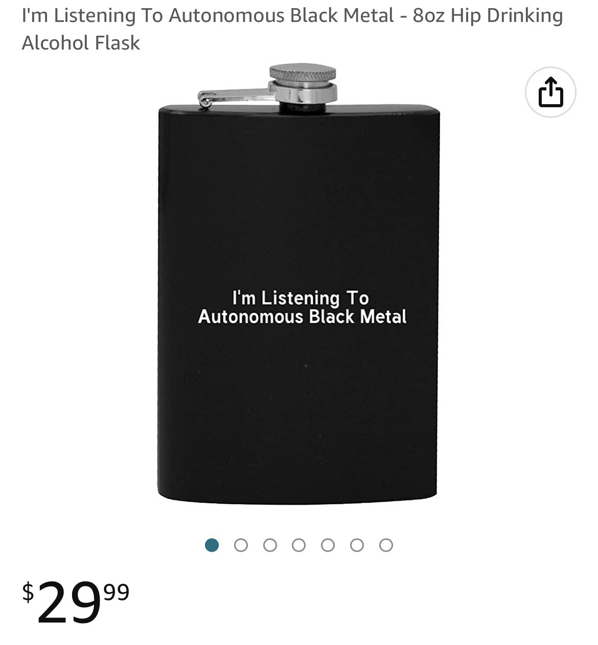 An algorithmically-generated image of a product which will have no real-world existence until someone orders it, bearing an algorithmically-generated legend, which itself invokes an algorithmically-generated genre (i.e. no human band has ever organically identified itself as playing “autonomous black metal,” the genre having been created retrospectively by Spotify). Brace yourself, we’re in for a whole lot more of this infinite-regression, hall-of-mirrors stuff. #universalpaperclips