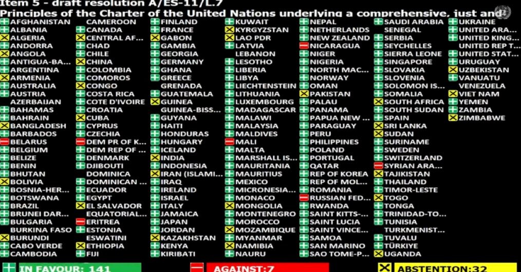 #UNVollversammlung mit erneut übergroßer Mehrheit auf Seite der Ukraine. Klares Signal für Frieden & regelbasierte internationale Ordnung.