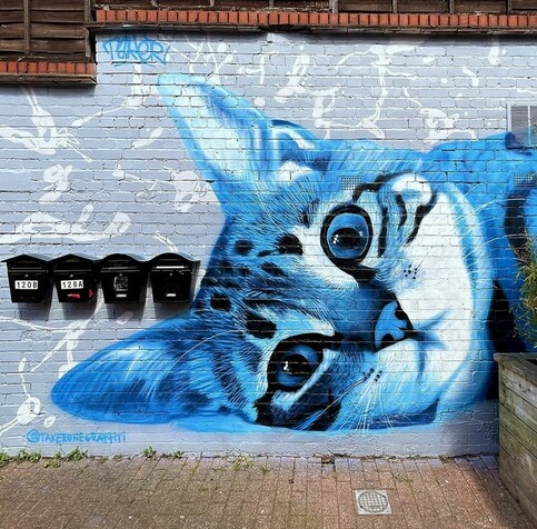 🐈Artist: #TAKERone in City: #Bristol UK 🇬🇧 - Title: "Blue Cat" - (for #upfest ) - #Streetart #Art #Mastoart #Mural #Artwork #catsofMastodon #Cats