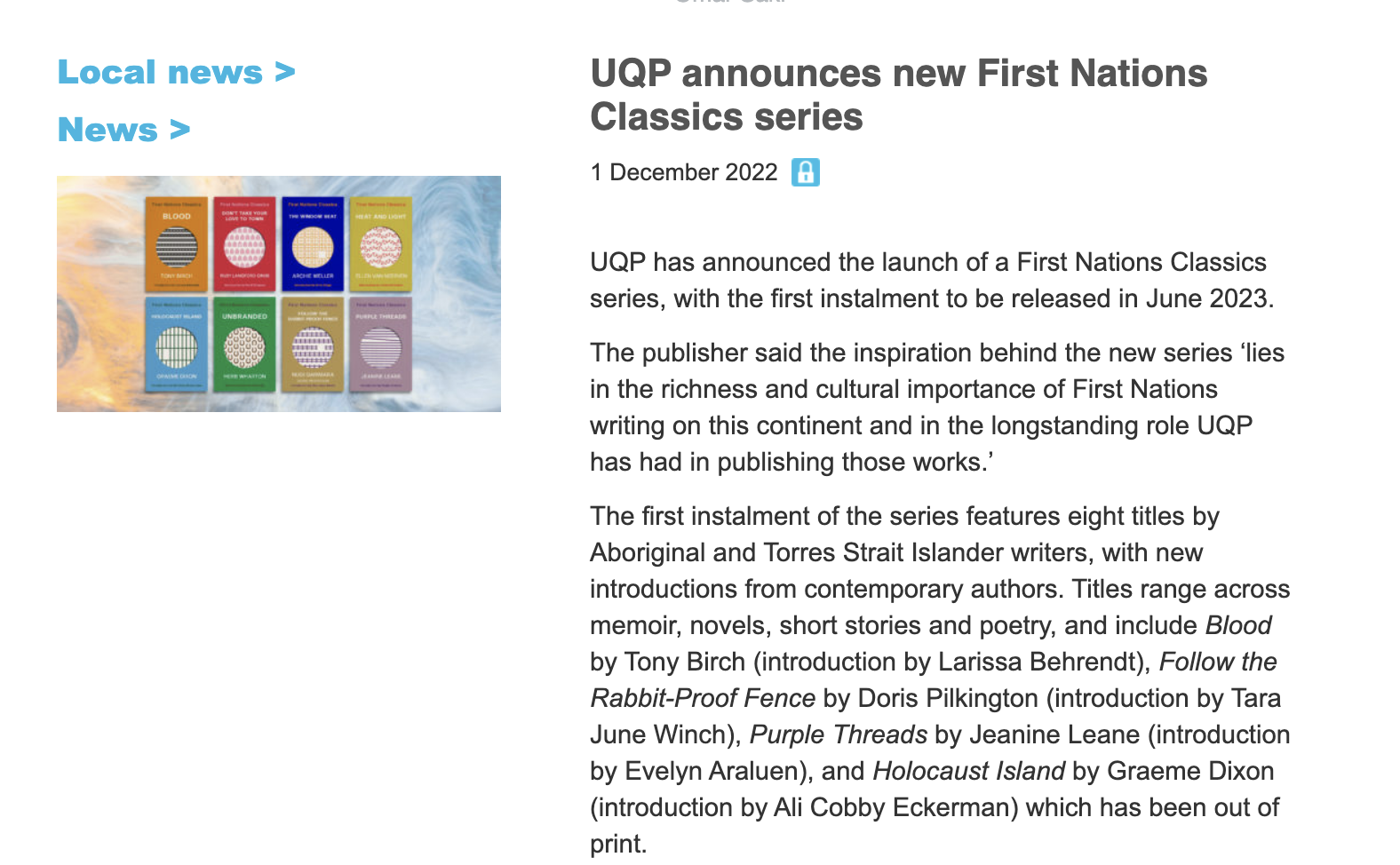 Excellent news. #UQP is one of the best #publishers in the country, leading the way tbh.