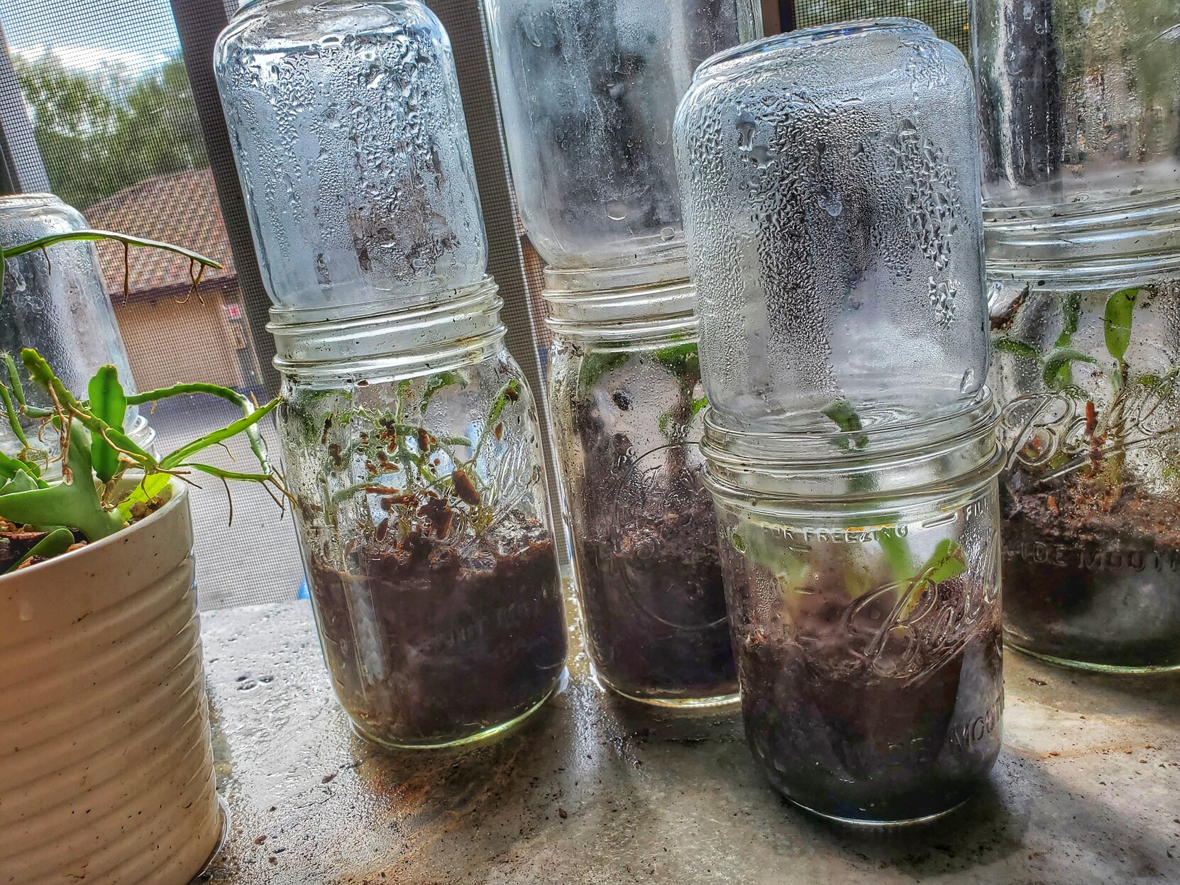 The current state of my newish garden. Pardon the branded starter pots. I tend to save & reuse them, to reduce plastic waste. Only herbs at present. Not enough porch space for most winter root veggies & won't start spring seeds until January. Have a bunch of sage & basil clones off to a good start, lemongrass is coming along & finally having some success with rosemary & oregano cuttings. The mint is loving this cooler weather.