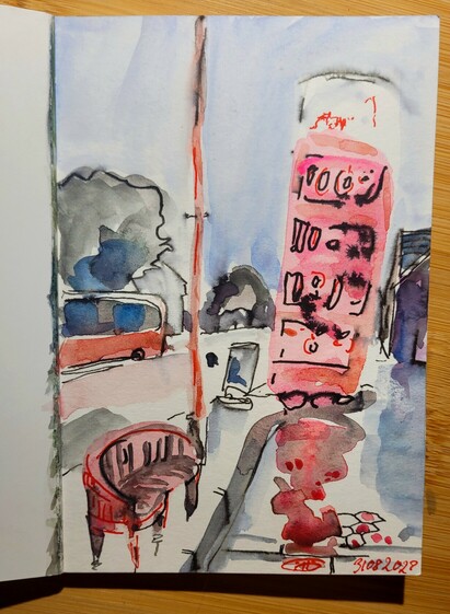 Erinnerung an #Leipzig, Ecke Eisenbahnstraße #urbansketching #watercolour #MastoArt #KleineKunstklasse Bild 2: Ich wollte noch rot drin haben