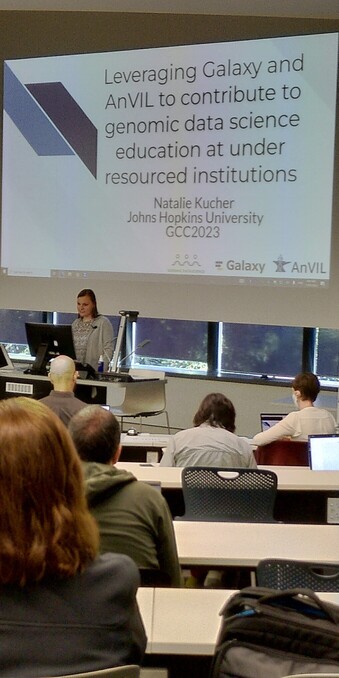 Natalie is now talking about leaveraging #usegalaxy and AnVIL to contribute to genomic data science education at under resourced institutions.