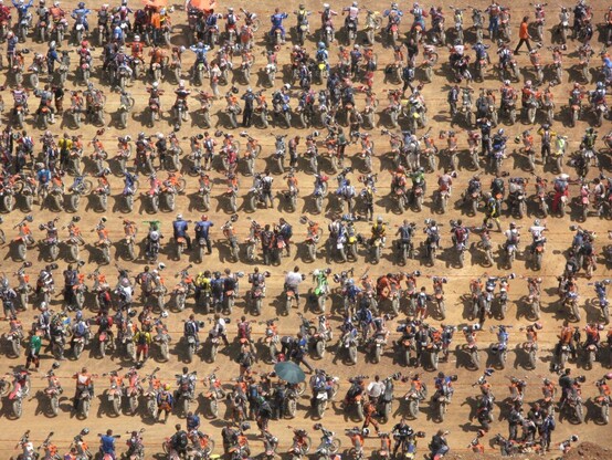 After two days of qualifying, the 500 fastest riders all get to start in 35 km endurance race through a huge quarry. The race is automatically ended after 4 hours (for safety reasons, I assume), by which point typically less than 10 riders have actually made it to the finish yet.