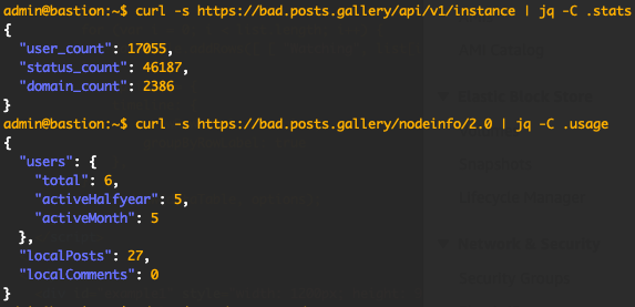 https://bad.posts.gallery/api/v1/instance ("stats" component) vs