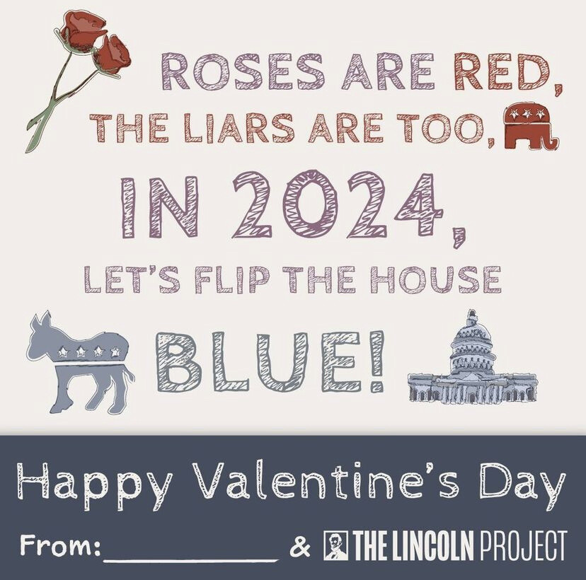 Roses are red. The liars are too. In 2024, let’s flip the house blue!