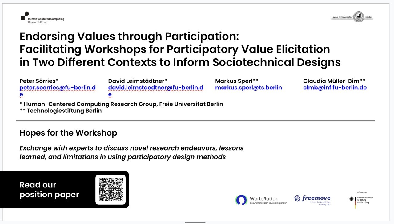 Today at #MuC2023 Peter Sörries presented an interesting study design and method on “Endorsing #Values through Participation: Facilitating Workshops for Participatory Value Elicitation in Two Different Contexts to Inform Sociotechnical Designs”