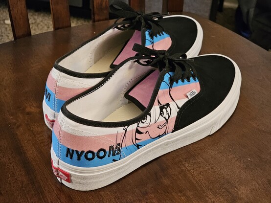 My custom transfem Vans came in!! #vans #vansshoes #TransRights #TransRightsAreHumanRights #nyoom #Pride2023 #furry #furryart art by @artistic_dot (Twitter) 💜💜