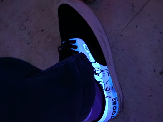 My custom transfem Vans in the black light!! #vans #vansshoes #TransRights #TransRightsAreHumanRights #nyoom #Pride2023 #furry #furryart art by @artistic_dot (Twitter) 💜💜