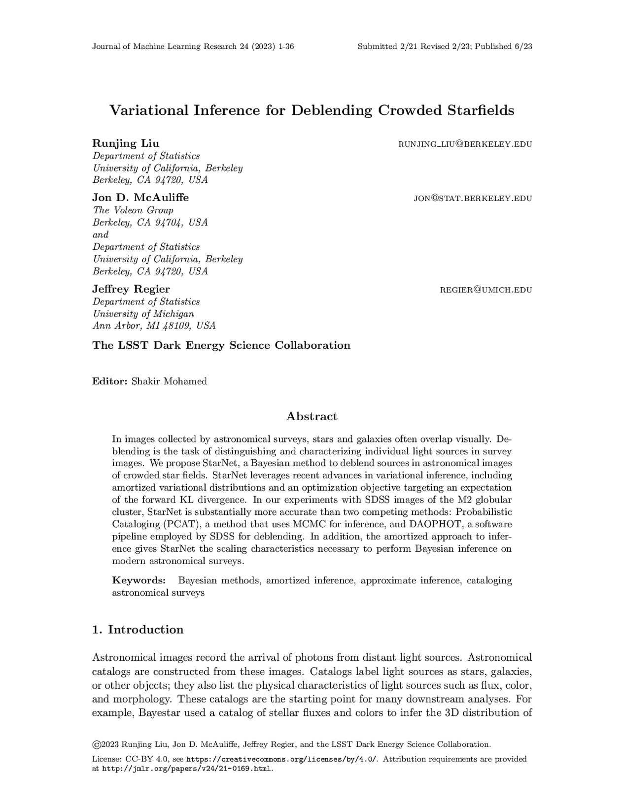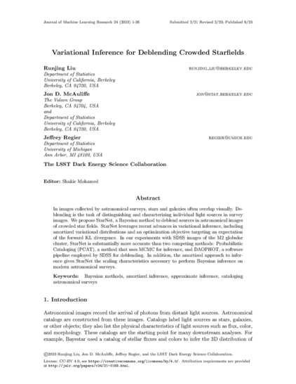 'Variational Inference for Deblending Crowded Starfields', by Runjing Liu, Jon D. McAuliffe, Jeffrey Regier.