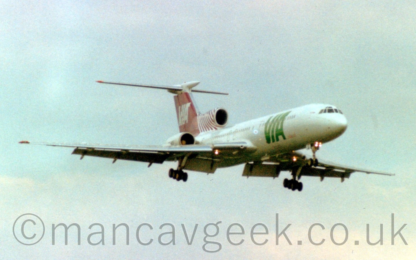 LZ-MIS, Tupolev Tu154M, Varna International, on approach to Manchester Airport, some time in the mid 1990s, as seen from The Airport Hotel.