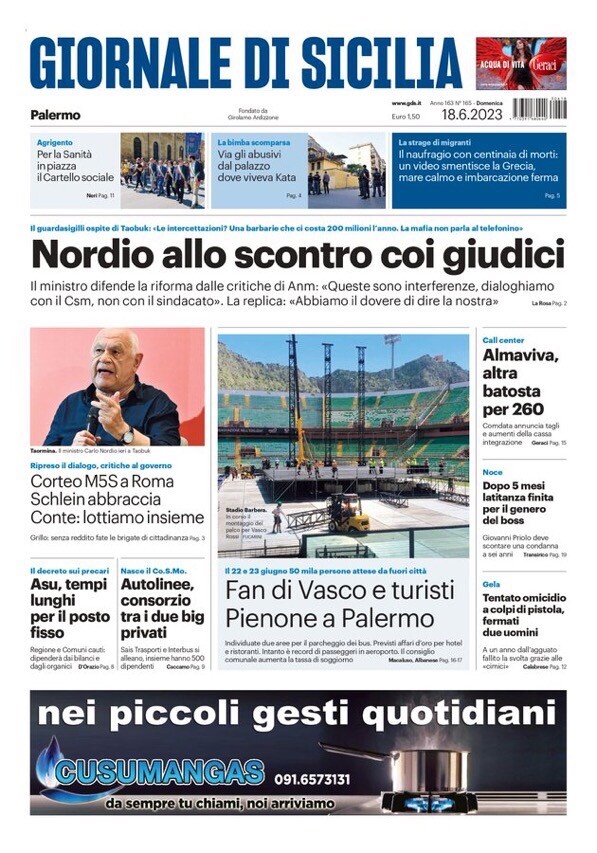 #Nordio #firenze #palermo #vascorossi #edicola #primapagina #rassegnastampa #18giugno