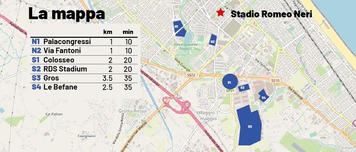 Organizzate 6 nuove grandi aree straordinarie di sosta ed estesi i servizi di Metromare e trasporto pubblico per accogliere le migliaia di fan provenienti da fuori provincia allo stadio comunale Romeo Neri il 1 e il 2 giugno