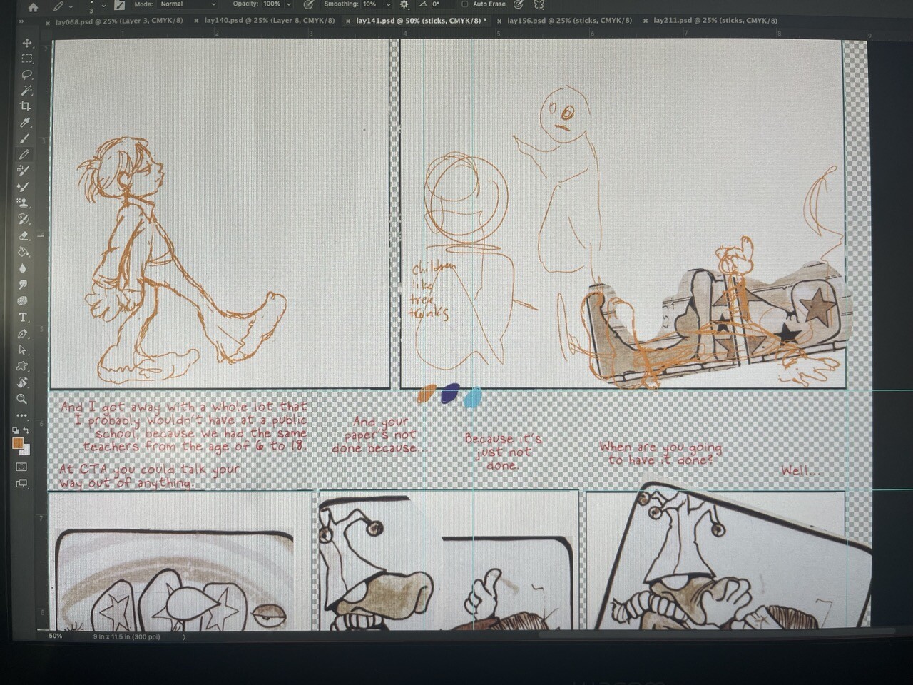 Digital drawing again today! It’s just a drop in the ocean of my unfinished graphic novel, it’s less than two hours a day, but it feels good. I always forget the act of arting feels good. (Here’s a peek behind the next interviewee-pastiche…) #MastoArt #DigitalArt #PhotoshopCartooning #thumbnailing #wip #VaughnBode