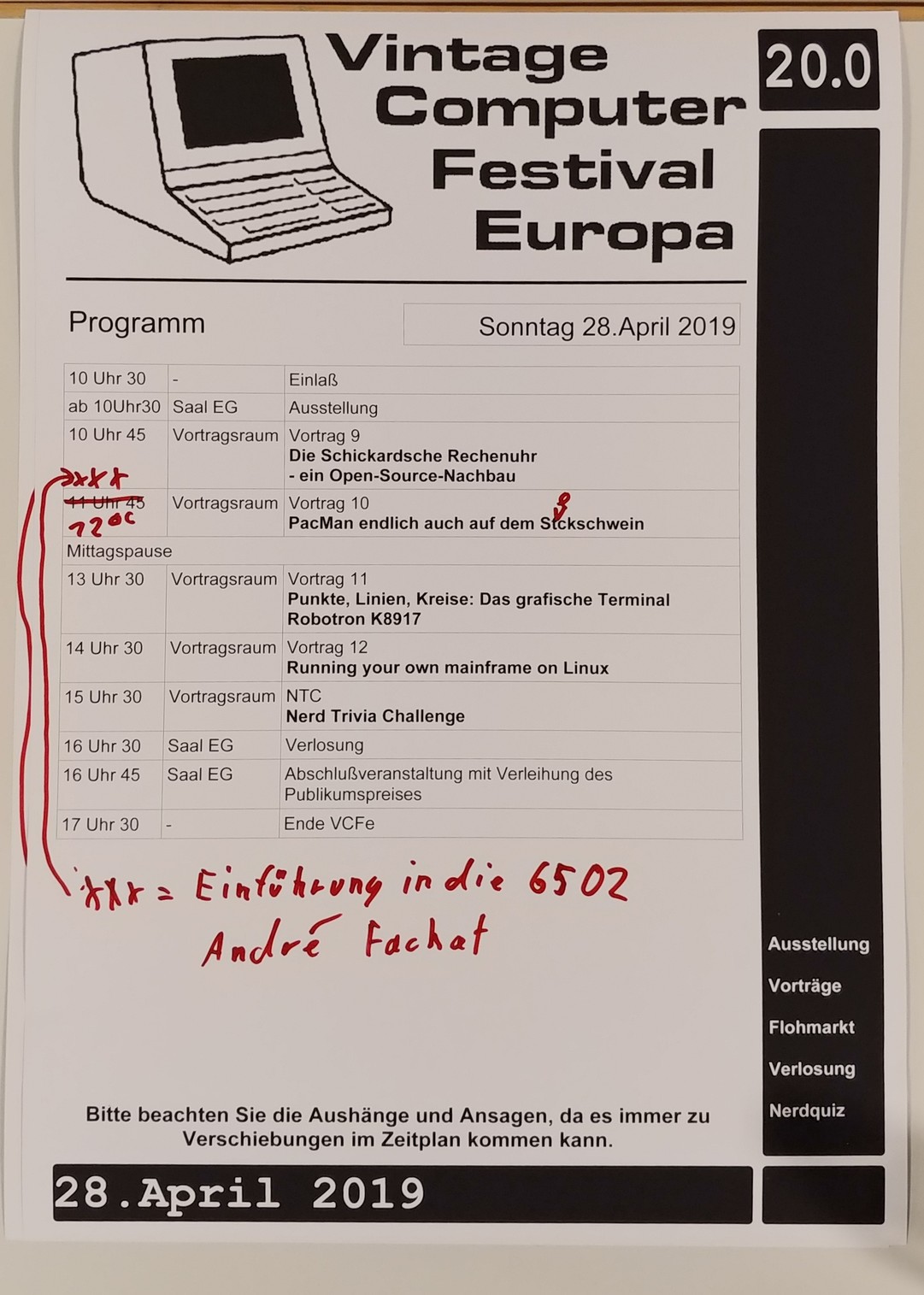 Aufgemerkt! Es gibt Änderungen im Vortragsprogramm für Sonntag. #vcfe20 #vcfe #vintagecomputing