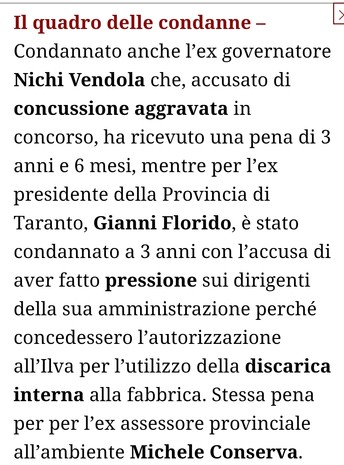 condanne per i #riva #vendola e altri politici che favorirono inquinamento massiccio sulla pelle dei tarantini.grazie a @alemarescotti@twitter.com @angeloBonelli1@twitter.com @genitoritaranti@twitter.com #ambientesvenduto