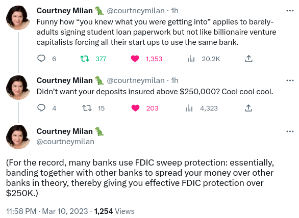 Excellent piece, with receipts, on how #VentureCapitalists basically egged each other on into a bank run, then threw a collective tantrum until the Biden administration promised to rescue all their millions--that they don't have a clue how to budget or manage.