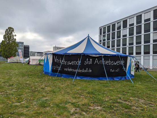 Heute aus der Straßenbahn erfreut das #Verkehrswendecamp erblickt. Freue mich schon auf die schöne Aussicht bei den nächsten Fahrten vom/zum Hbf. Hoffentlich reicht meine Zeit auch einmal zum Aussteigen und Besuchen….