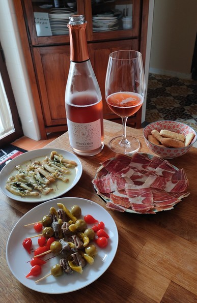 Venga, que hoy hay #vermú en #CasaLillo 😋 Con jamón ibérico, navajas al natural y banderillas con una copa de Cremant de Alsacia brut rosé Wunsch et Mann 🥂