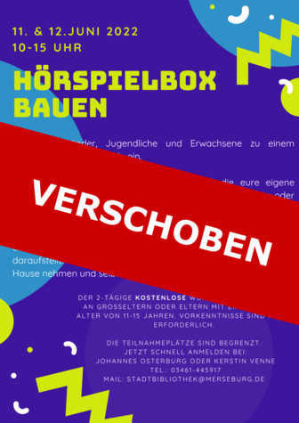 Leider muss unser Workshop "Hörspielbox bauen" am Wochenende kurzfristig verschoben werden 😔.