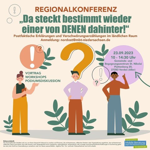 📍 Konferenz „Da steckt bestimmt wieder einer von DENEN dahinter!“, über #Verschwörungserzählungen im ländlichen Raum (23.9., Verden/#Niedersachsen): https://bundesverband-mobile-beratung.de/veranstaltungen/da-steckt-bestimmt-wieder-einer-von-denen-dahinter/ 3/9