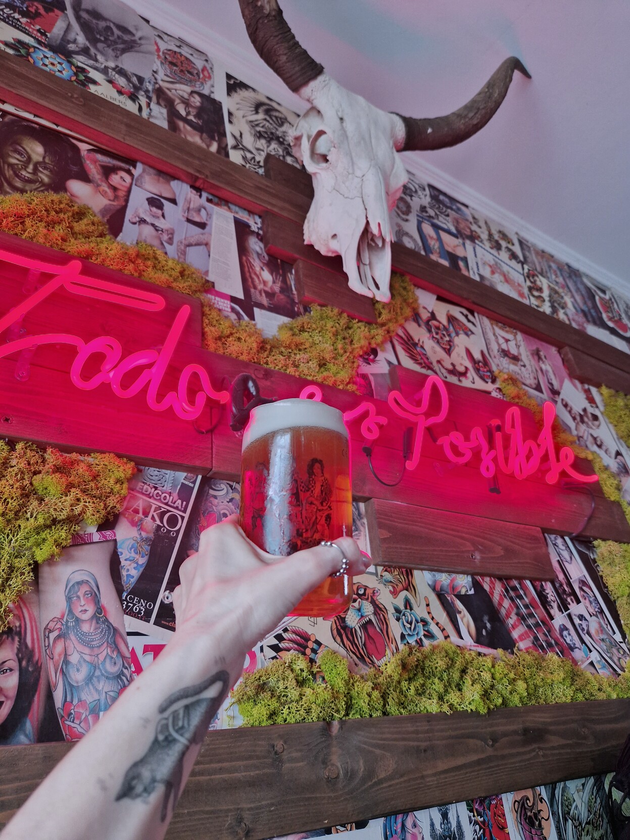 - Una India Pale Lager* piuttosto indecente ( con diacetile sparatissimo, il che vuol dire che sapeva di burro fuso... uno degli off flavors che più non sopporto in una birra.) ma il posto, una specie di bistro e tattoo studio, era fighissimo!!