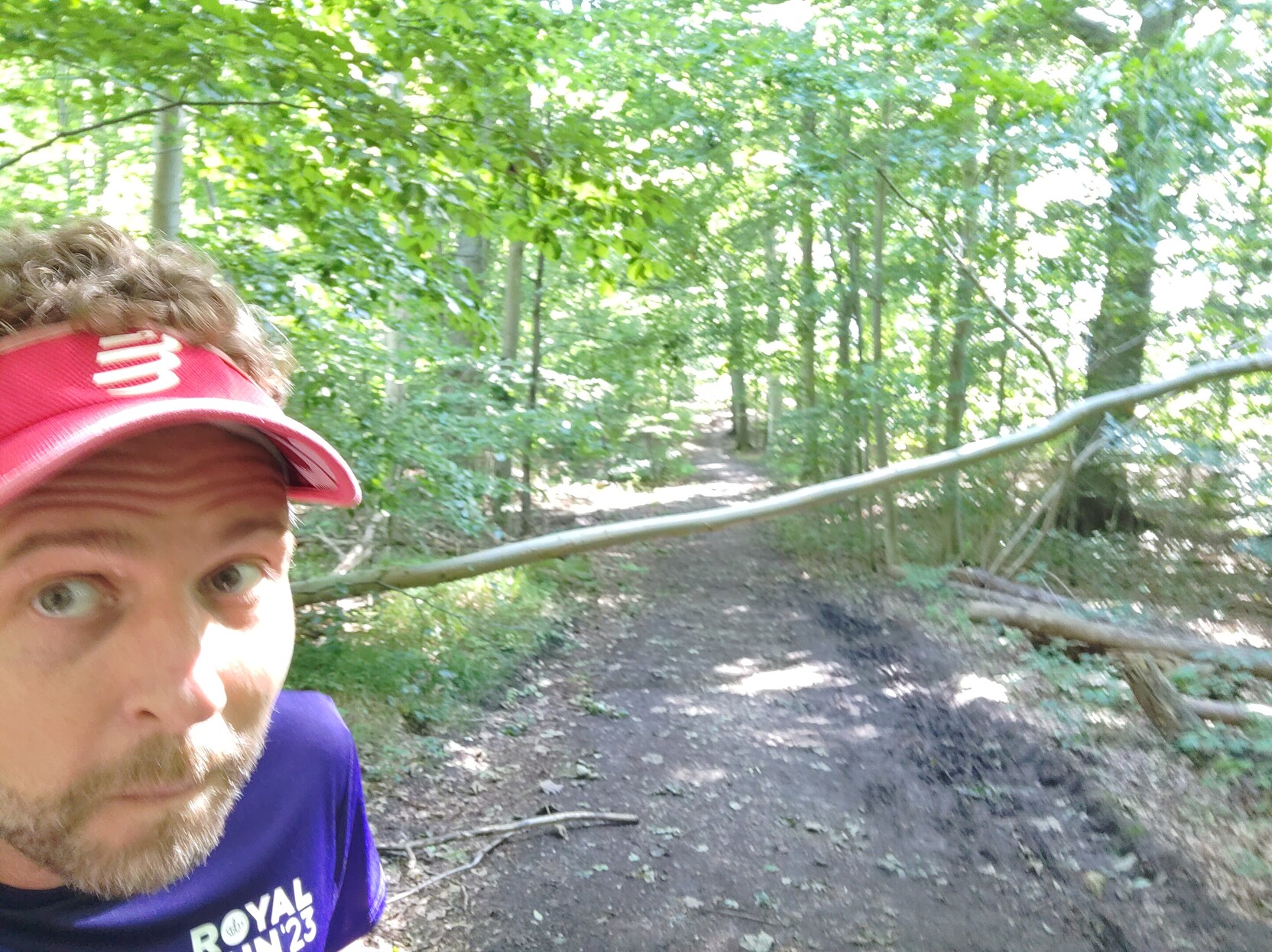 Det var hårdt at forsøge at løbe hurtigt på små skovstier med bakker. Og lykkedes slet ikke når jeg skulle vende 180° når jeg løb forkert.