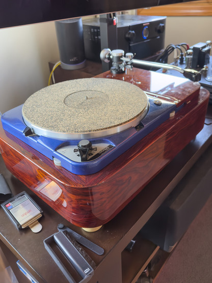 Current #hiFi setup. Fullly restored Thorens TD 124/II, Decware 341.5 dual triode amp, Audio by Van Alstine Vision phono (early model), Bob's Devices 1:15/1:13 Sky Cinemag SUT, ZU Audio Omen II speakers. #audiophile #audio #VintageAudio