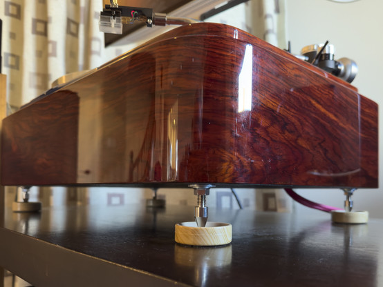 It may not be everyone's cup of whatever liquid comes to mind, but it is the best, most accurate representation of the cocobolo veneer plinth for my Thorens TD 124/ii I've ever taken. The wood changes depending on the light so dramatically it usually just comes off looking cheap.