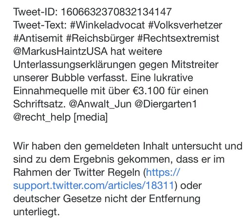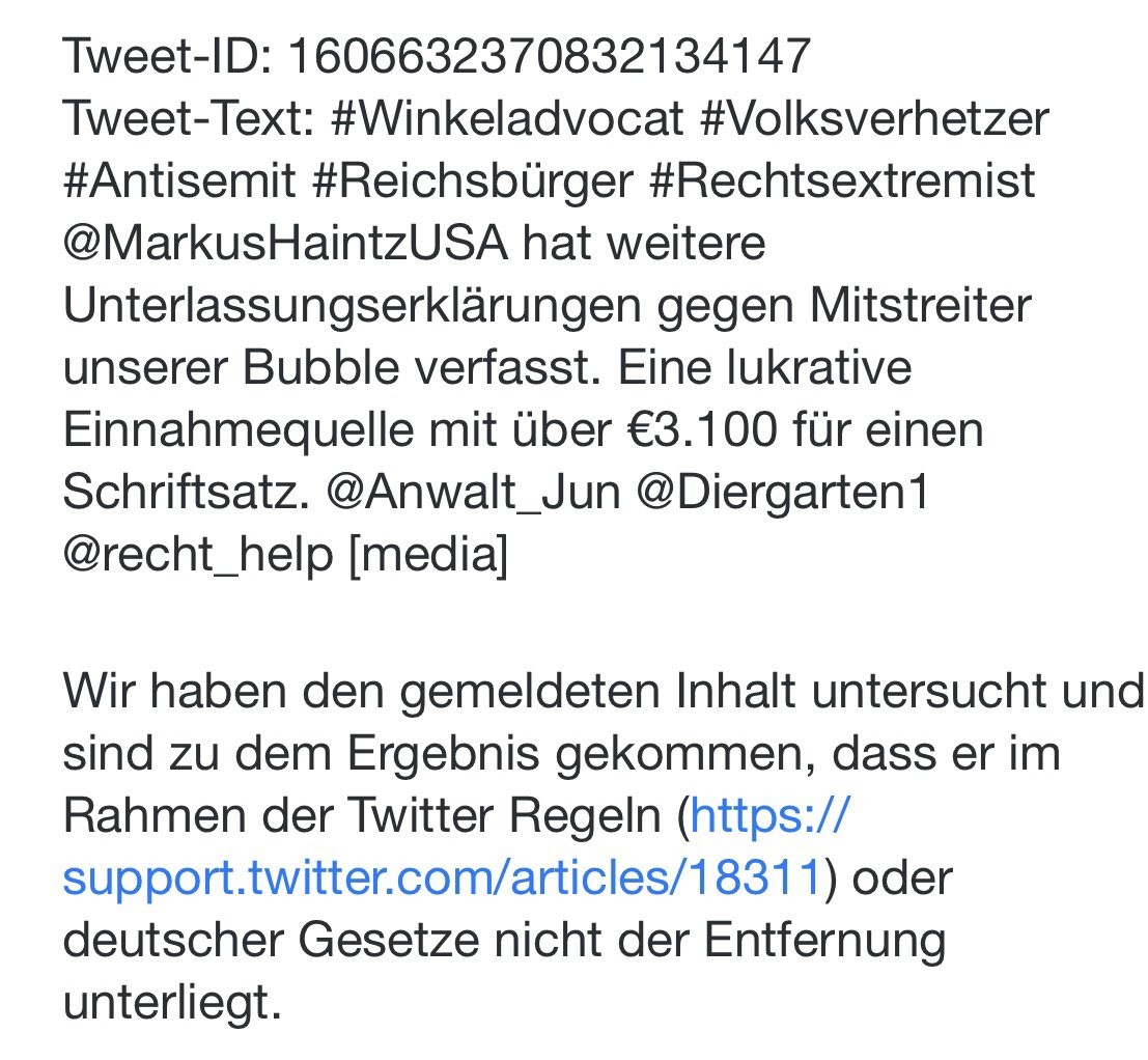 Egal ob @LenzAnselm@twitter.com Herausgeber @Demokratischer8@twitter.com oder SpeziAnwalt für Unterlassungserklärungen @MarkusHaintzUSA@twitter.com #Haintz