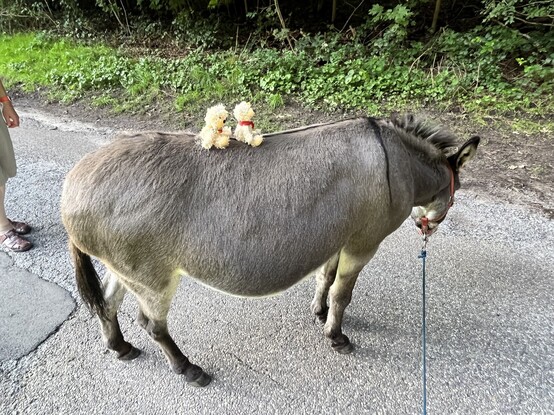 @carola1horn wir haben noch eine Nachreichung für den #Turnverein : Paul🐻 und Marie 🐻 waren heute mit den Menschys unterwegs und haben 🫏Camilla getroffen. Erst haben die Menschys mit Camilla geschmust, die das ganz gerne mochte und dann haben die beiden 🐻🐻 lieb gefragt und durften aufsitzen. Also hier die Eiscremebären beim #Voltigieren