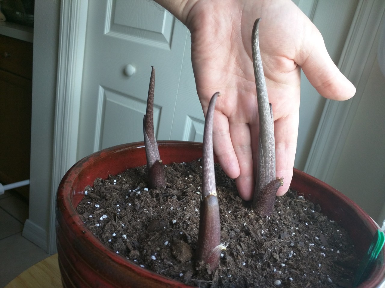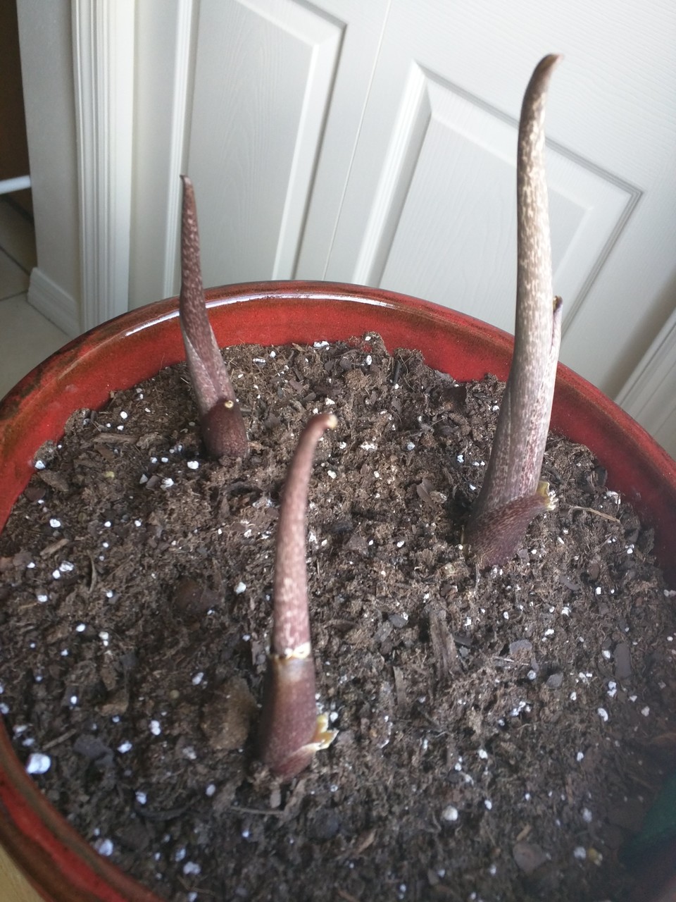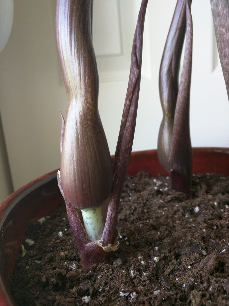 My #voodoolily is starting to stir! https://hort.extension.wisc.edu/articles/voodoo-lily-amorphophallus-konjac/