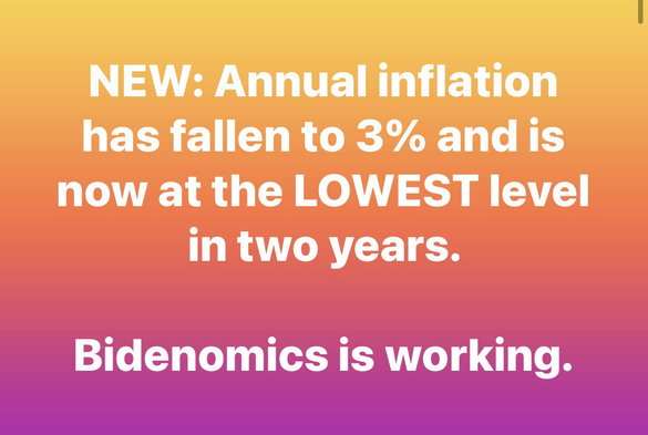 Inflation was 9% last year at this time. Bidenomics is working. #VoteBidenHarris2024 Thread
