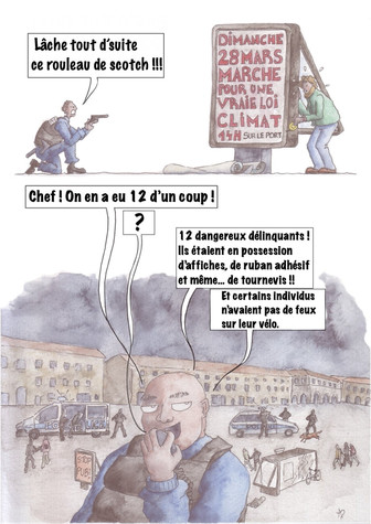 🤔 Une affiche pour demander une #VraieLoiClimat est elle une arme ou représente t elle un danger pour la sécurité de tou-te-s ?