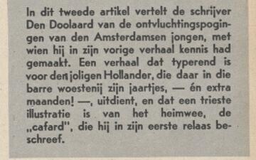 "En wij doen er de belofte bij, in komende nummers enige artikelen van de hand van onzen medewerker Den Doolaard, verlucht met magnifieke foto's over het Franse Marokko en het Franse vreemdelingenlegioen, dat dit land beheerst, te zullen publiceren"