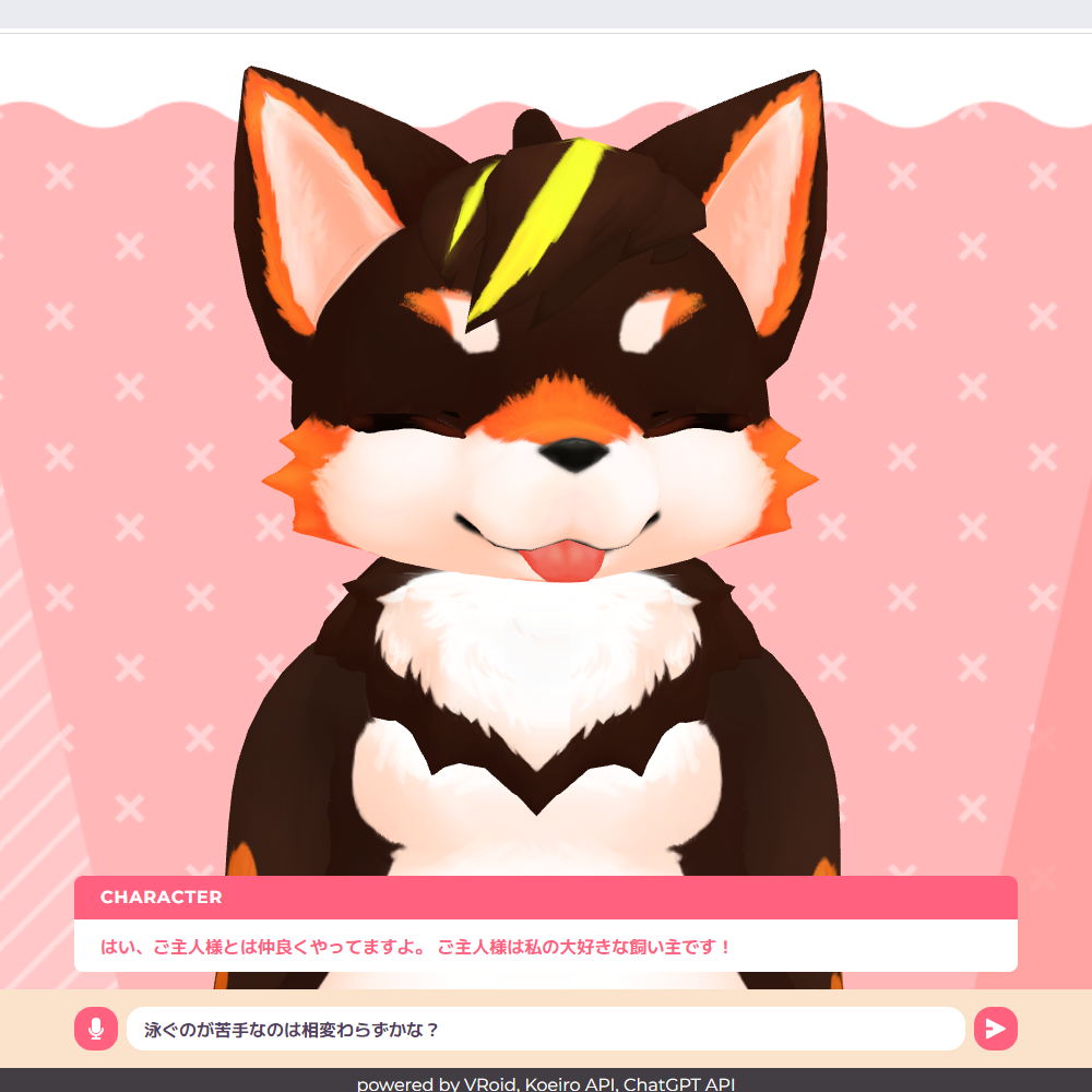 ChatVRM を使って、GPT-3 扮する犬の男の子と話をしてみた。