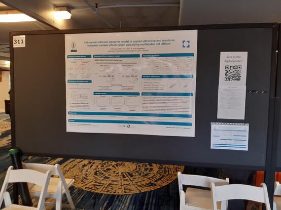 I had a wonderful time this morning presenting my poster on an efficient Bayesian observer model predicting attractive and repulsive temporal context effects @VSSMtg #VSS2023! If you missed it and are interested, find the poster here: osf.io/fawj3
