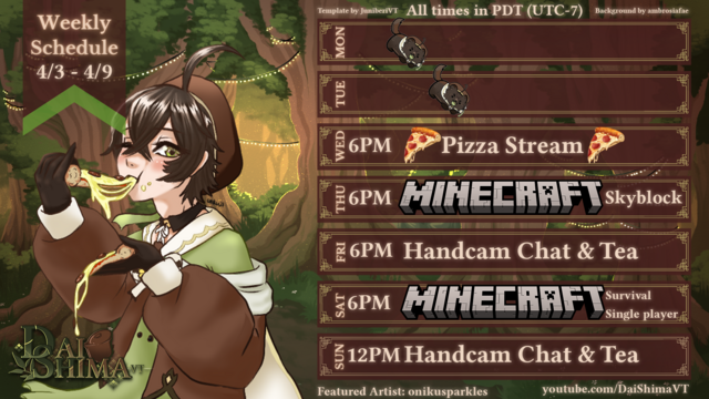 #vTuber #vTuberSchedule #vtuberen #schedule #ENVtuber #VtuberUprisings #minecraft #cooking #pizzabagel #bagels #pizza #kahoot #tea