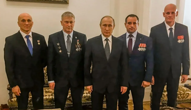 Reagując na marsz wagnerowców Putin lamentował o "ciosie w plecy". I faktycznie, na zdjęciu z 2016 roku - z odznaczonymi liderami wagnerowców (po prawej: sławetny Utkin; ten co, ma wydziarane na obojczykach insygnia ss) - lokator Kremla stoi tak, że ma ich za plecami ;) #rosja #putin #wagnerowcy