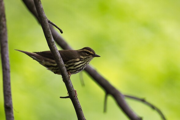 A blackpole warbler mooning me as it leaves with all the other warblers. Just kidding, this one was really early and there was still more warbler action after it passed through.