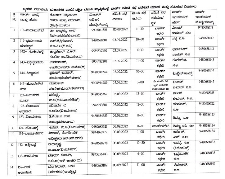 Here's is the list of all 44 #WardCommittee mtgs tomorrow including time, venue, contact number.