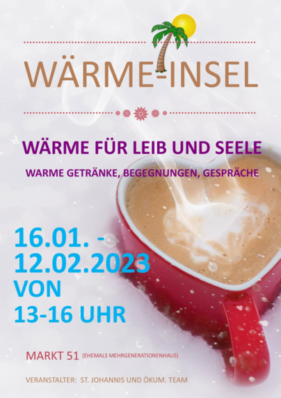 Mittlerweile läuft die #Wärmeinsel in #Schweinfurt. Wärme für Leib und Seele gibt's jeden Nachmittag für alle. Herzliche Einladung! #Wärmewinter https://www.schweinfurt-evangelisch.de/inhalt/waerme-insel-schweinfurt-vom-1601-bis-1202